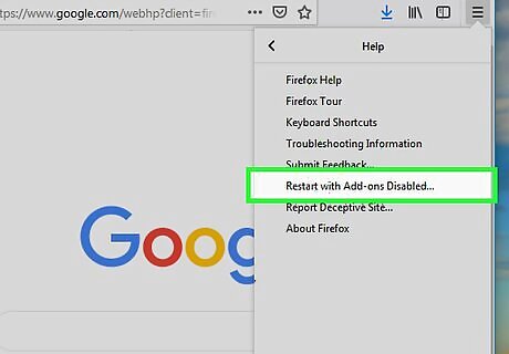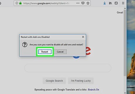 Click Restart with Add-ons Disabled. A confirmation message will appear.