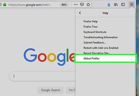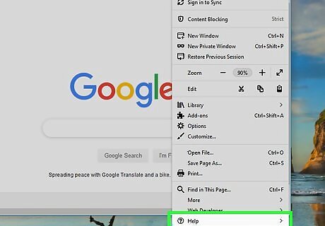 Click Help. It’s near the bottom of the menu. This option appears as a ″?″ icon on some versions of Firefox.