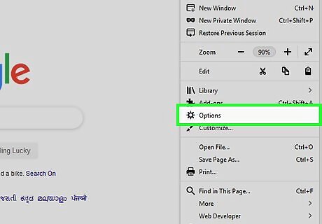 Click Options. It’s near the middle of the menu.