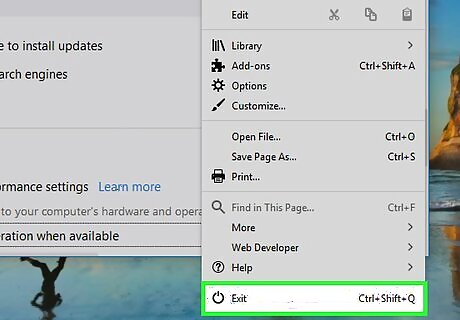 Click the ≡ menu and select Exit. It’s at the bottom of the menu.