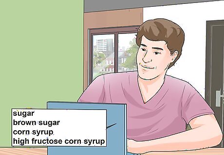 Familiarize yourself with the many names for sugar. Food manufacturers have gotten very clever about putting a variety of sweeteners in foods — there are over 60 different names for sugar. There are new names, confusing names and ones that you may have never heard of; however, they're all considered added sugars. Look beyond your current knowledge of added sugars. There are many more names for sugar besides the common versions like: sugar, brown sugar, corn syrup or high fructose corn syrup. Other names for added sweeteners include: anhydrous dextrose, confectioners sugar, corn syrup solids, dextrose, fructose, honey, molasses, agave syrup, maple syrup, invert sugar, maltose, malt syrup, brown rice syrup, cane juice, sugar in the raw, nectars, sucrose, fruit juices, fruit concentrate, and many more. If you see any of these names in your ingredient list, you'll know there is a source of added sugar in your food.