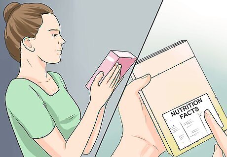 Scan the "front-of-pack" labels. Many times, people pick up different food packages due to the information that is advertised on front of the box or package. This marketing or "front-of-pack" labeling can provide information to the types of ingredients or the nutritive value of foods. One common sugar related claim you'll see on boxes and packages is "sugar-free", "zero sugar" or "sugarless". All of these claims have identical meanings: there is 0.5 g or less of sugar in each serving of the food. If you're looking for foods with absolutely no sugar, choose foods with these claims on the front. Another common sugar claim is "no added sugar." This means that no additional sugars have been added to the product during processing; however, the product contains a natural source of sugar. "No added sugar" can be used as a marketing trick since the food may not be actually low in total sugar, since they may contain a lot of sugar naturally. Another term you may see is "unsweetened." This claim can fall into either of the above categories. For example, unsweetened tea doesn't have any added sugar or artificial sweeteners; however, unsweetened applesauce has no added sugar, but does contain natural sugar.