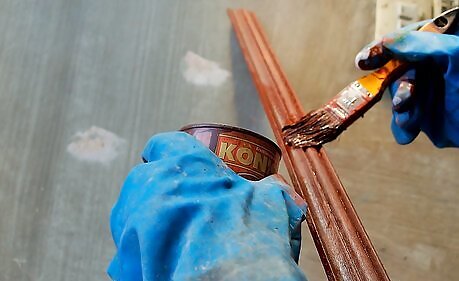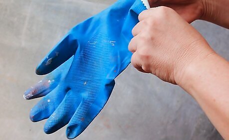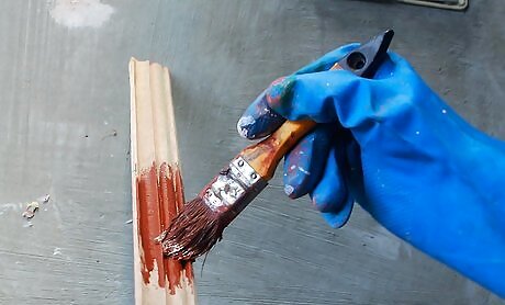 Put rubber gloves on to protect your hands from the stain and place drop cloths on the floor to protect it from drips.