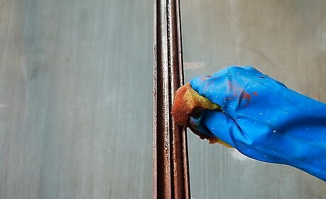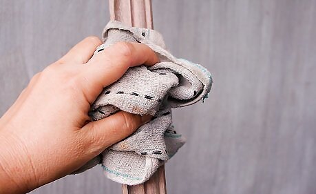 Wipe down the trim with a tack cloth to remove the sawdust completely. Alternatively, you can use a clean cloth and denatured alcohol. A cheese cloth also works well for this.