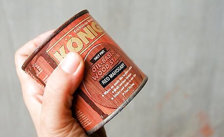 Fill in any nail holes or imperfections in the wood with wood filler. You will want to use a tinted filler the same color of the stain you will use. Scrape excess filler off the wood with a putty knife. Allow to dry thoroughly according to the package instructions.