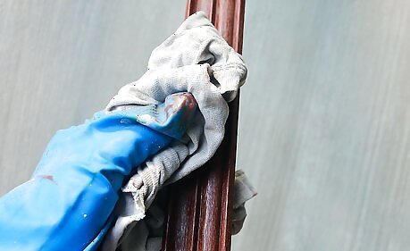 Wipe the stain off using a clean cloth. Go against the grain, working the stain into the wood, and then wipe the wood again along the grain to make the color even. Make sure you don't remove too much stain.
