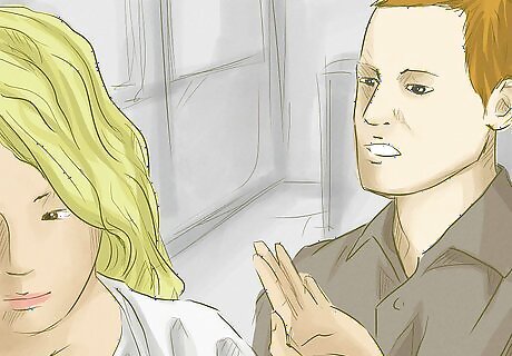 Use your body language. Make eye contact when talking with the person. Keep a neutral or positive face if possible. Stand tall and upright. Practicing in the mirror may help you. Non-verbal cues can be just as meaningful as words in how to stand up to someone. Avoid body language that threatens or demeans the person. You want to be his or her equal, not another bully.