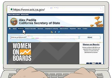 Apply for the name that you've chosen. Take the following steps: Visit your state's filing office website or call your state's corporations division. Ask to see if the name is available or if it is already taken. If the name is available, then you can usually pay a small fee that will reserve the name for you until you've filed your Articles of Incorporation. If the name is taken, then create another name.