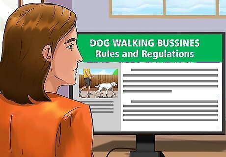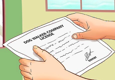 Get a license, if necessary. Dog walkers rarely have to get a license specifically for dog walking, but they usually do have to get a general business license for having their own business. To find out which license you need to get (if any), search online to find out what your state requires.