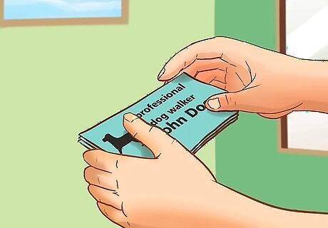 Distribute business cards. Design a business card online with a company like Vistaprint, that makes customizing and ordering business cards easy and inexpensive. Resist handing your card out to anyone and everyone. Instead, stick to veterinary clinics, pet supply stores, as well as family and friends who are likely to pass the word along. Your business card should be attractive and include at least your business name, website, and contact information (phone number and email address).
