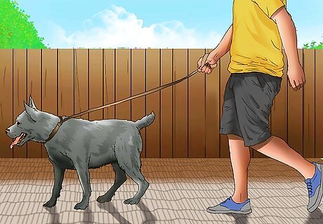 Take safety precautions. As you walk your own dog or a friend’s dog, do your best to prepare for and prevent dangerous situations. When another walker walks by with a dog, place yourself between the two dogs so that they don’t get too close. Carry a can of citronella spray whenever you’re walking a dog so that you can deter any aggressive dogs or even wild animals that suddenly approach the dog you’re walking. If the dog you’re walking has aggressive tendencies with other dogs, avoid taking the dog to a dog park.