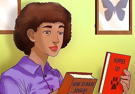 Learn about dogs. Read books and articles online about different dog breeds so that you can understand and properly handle the behavioral tendencies of each one. It is also necessary and beneficial to have knowledge about socialization techniques for dogs as well as how to read canine body posture in order to have the most success. Greyhounds, for example, are known for their mild, sweet temperament while Siberian Huskies can be very challenging and independent due to their high level of intelligence. Learn about the different exercise requirements for different breeds. Herding and working breeds, for example, will need longer and more frequent exercise, as will puppies. Older and very young dogs will need to go out more because they can’t control their bladders as well.