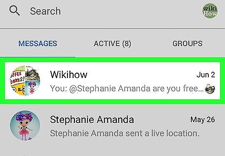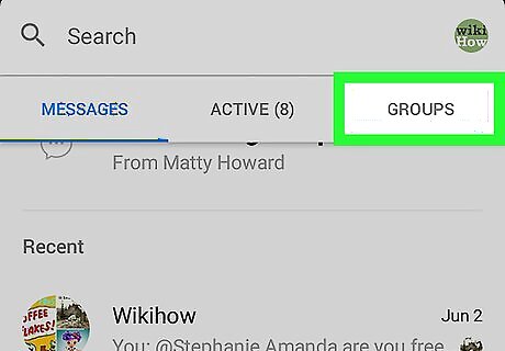 Select a group. If you don't see the group in which you want to start the video chat, search for it by typing its name (or the name of one of the other members) into the search bar at the top of the screen.