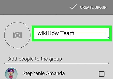 Type a name for the group. This name should go in the box at the top of the screen labeled “Name.” If you want, you can also give the group its own avatar. Tap the gray camera icon next to the group's new name, then select an image that represents the group.
