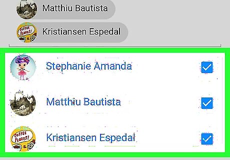 Select friends to add to the group. Tap a friend's name to select them. A check mark will appear to the right of each selected name.