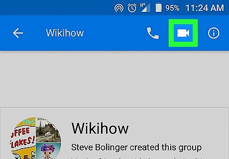 Tap the video icon. It's near the top-right corner of the screen. Members of the chat will be notified that a video call has begun, and they can join whenever they'd like. If a video chat has more than 6 active members joined in, all participants will only be able to see the person who started the chat. Similarly, the person who started the chat will become the only one who can end the call. To disconnect the video call, tap the red phone icon at the bottom of the screen.