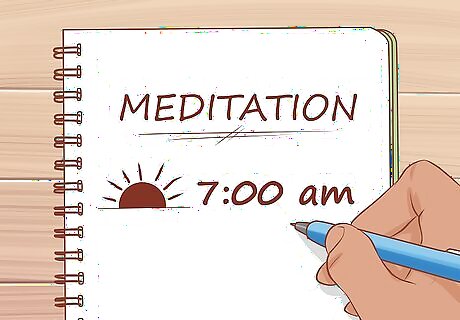 Make a consistent schedule. Meditation, especially for those who are beginners or have not meditated for some time, can be difficult. Many of the effects of meditation only come after significant time and work is spent meditating. The more frequently and consistently you can meditate the better and more developed your results will be. Try to schedule at least some time each day to sit and meditate, even if it is only for two minutes. A consistent schedule does not mean a demanding schedule. In other words, don’t get caught up in how you are meditating, just do! Try committing to meditating first thing in the morning, every morning, no matter how long you can meditate for.