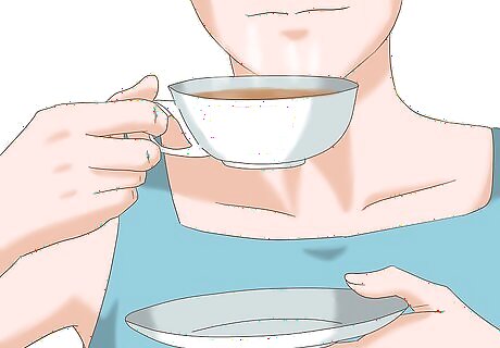 Have some caffeine. The morning after a late night, a little caffeine can help get you going. It’s important not to overdo it, though. Most people only need 100 to 200 milligrams (mg) to get an energy boost, so start with a single cup of coffee at breakfast. The effects last for three to four hours too, which means you won’t need to have more caffeine until about lunch time if you’re feeling tired again. If you aren’t used to having caffeine regularly, it’s especially important to stick to small doses so you don’t wind up jittery and unable to concentrate. Don’t have more than 100 mg, or a 5 ounce cup, at a time. If you don’t like coffee, you can swap it for your favorite energy drink, soda, or tea. Just make sure to check the label to see how much caffeine is in your beverage so you don’t overdo it. It’s a good idea to drink your caffeinated beverage with a meal or snack. The food will help slow the release of caffeine in your body, so it doesn’t hit you all at once.