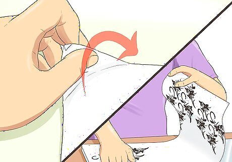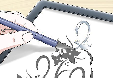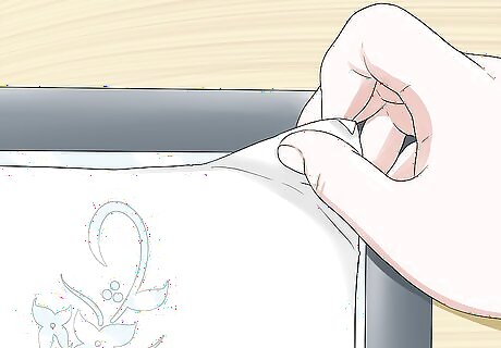 Trace your printed stencil onto the contact paper. Then cut it out with an Xacto knife. Use this time to smooth out any air bubbles you may have created when applying the contact paper. You can even cut the bubbles and smooth them down. Most people like to apply their design to the border of a glass or mirror, so that you can still use the mirror. If you have a very large mirror, you can use larger designs near the bottom or top and still have use of the mirror. Contact paper will work for any kind of design, from ornate to simple. This is because it creates a good seal between the glass and the etching compound.