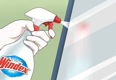 Clean your glass thoroughly with glass cleaner like Windex. Dirt will make it hard to adhere your stencil to the glass, and may interrupt the function of the etching solution. This is also a good time to put your glass in a ventilated area and protect the surface that it will be lying on. Make sure that the glass is dry before continuing to the next step.