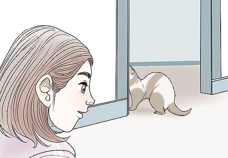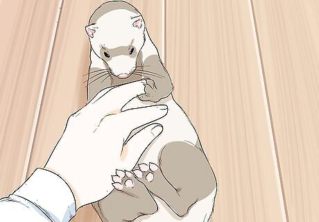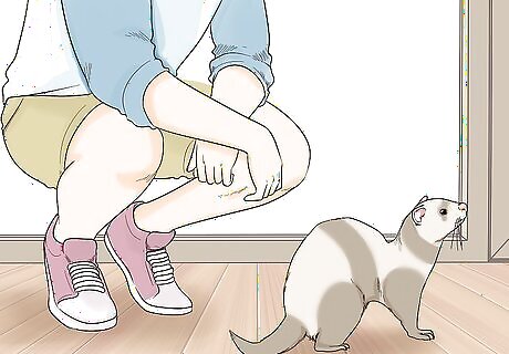 Supervise your ferret when it’s out of its cage. Ferrets should be let out of their cages for a few hours every day. However, during that time, make sure you know where your ferret is and keep an eye on what it is doing. It could be stealing one of your possessions, or it could even be crawling into a space that could lead to pain or injury.