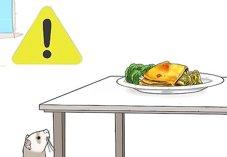 Watch your ferret for clues. If your ferret regularly runs away when you give it food or a treat, watch it to see which room it goes into or which area it prefers. Then, when it’s in its cage, go through that area and look for a stash.