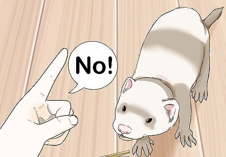 Firmly tell your ferret “no” if you see them steal something. If your ferret steals something and you catch them in the act or entering their nest, take the object from its mouth and firmly tell it “no.” Employ your favored disciplinary method, which can include softly squirting water on its face or withholding playtime. Never withhold food or water from your ferret as punishment. However, your ferret may stop stealing things when you’re around, then sneak off with them when you’re in another room or out of the house.