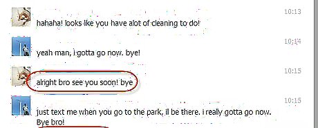 If the person responds similarly, bid farewell one last time. It is now your choice to wait for their response or to leave. If this person does not reply soon (considering that they normally reply fast), take the message and stop talking.
