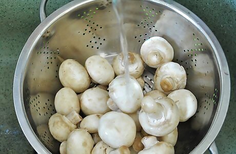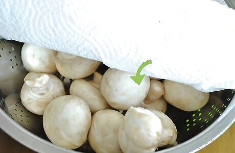 Clean the mushrooms first. If you don't plan to use your fresh mushrooms within a week or so, you'll want to freeze them to preserve them. Start by rinsing the mushrooms under water and then letting them dry in open air. You can spread them on a paper or tea towel to catch the excess water.