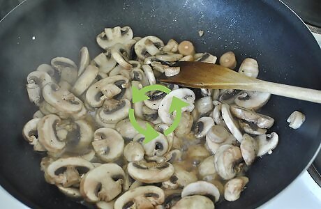 Slice and sauté the mushrooms. Slice your mushrooms into even pieces before you sauté them. Using an egg slicer can give you uniform pieces. Sauté them in one to two tablespoons of olive oil with some salt and pepper to taste.