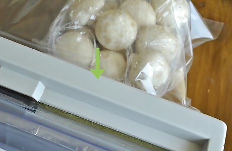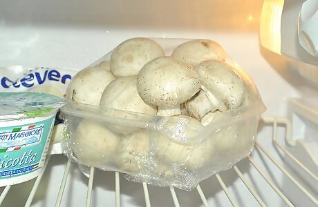 Rewrap the mushrooms with shrink wrap. If you do need a few mushrooms right away, make the smallest hole possible in the original plastic covering. Once you’ve taken the mushrooms you need out of the package, rewrap the area you removed them from with plastic wrap.
