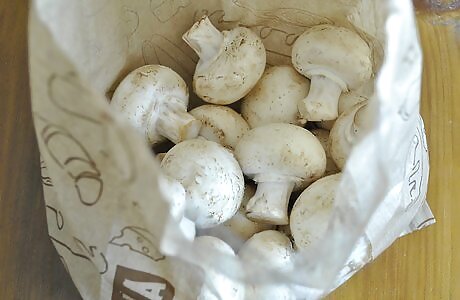 Put mushrooms into a paper lunch bag. If you don’t want to store your fresh mushrooms in their original packaging, you can instead store them in a loosely folded paper bag. The size of the bag can vary depending on how many mushrooms you’re storing, but brown paper lunch bags are generally the best choice. You can also wrap them in damp paper towels before you place them in the bag.