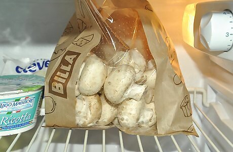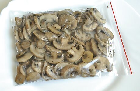 Freeze in plastic resealable bags. Once the mushrooms have cooled, store them in resealable plastic bags and freeze them. Cooking before freezing them prevents them from absorbing too much moisture when they defrost.