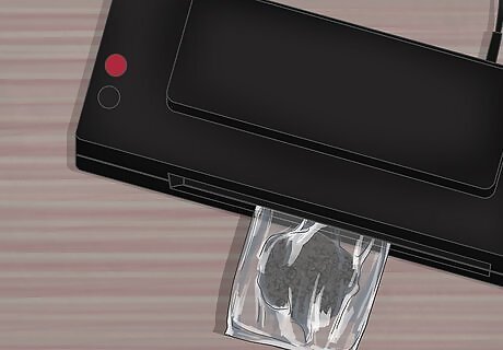 Compress the bag to expel as much air as possible and seal it. Too much air left in the bag could cause the truffle to get freezer burn, which would alter its taste. Squeeze out all the air you can before completely sealing the plastic bag. If you have a vacuum sealer, you could use that to get an air-tight seal.