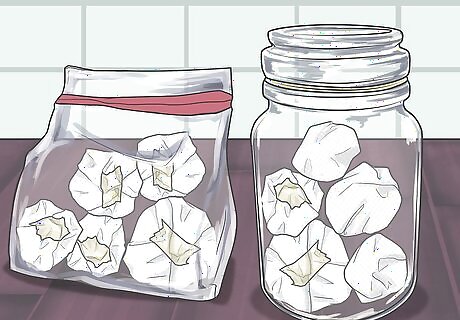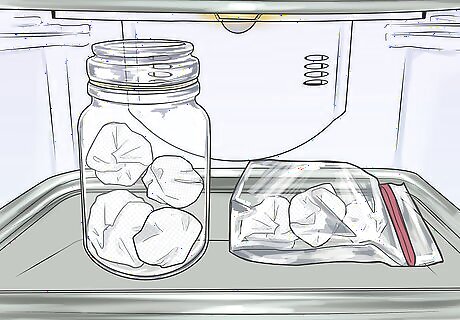 Place the rolled-up truffles into a plastic bag or glass container. You can put more than one truffle into the bag or container; just avoid putting so many that they would get smashed together. Culinary experts are split between keeping the container open versus sealing it while it’s in the fridge. An open container can help keep the truffle dry, but it can also let out a lot of the pungent truffle fragrance, which could be absorbed into other foods in your fridge. Use your best judgment to decide which method you’d prefer.