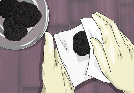 Pat the truffles dry with a clean paper towel to remove any moisture. If you aren’t going to use your truffles the same day you get them, it’s important to get them into the fridge as soon as possible. Gently pat each truffle; don’t run them under water to rinse them off first. You could use tongs or wear gloves while handling the truffles. Your fingers can add unwanted moisture, though the truffles should still be okay even if you do touch them.