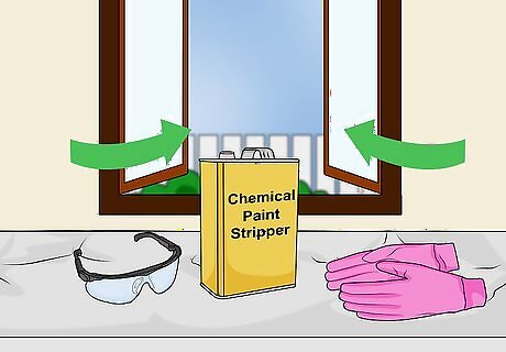 Prepare your work area. Lay down a drop cloth, cardboard, or a few layers of newspaper where you'll be applying your chemical paint remover. These chemicals can be very harsh, and can do damage to your home if they drip onto surfaces, like counters, tables, and the floor.