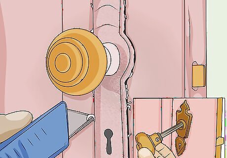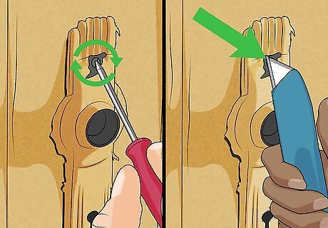 Uninstall the hardware. Paint may have filled in fastener slots (like screws) or created a layer over fasteners, making them difficult to remove. Use your utility knife to carve out these slots or to peel away paint so you can remove the fasteners easily. With an appropriate tool, like a screwdriver or claw hammer, take out the fasteners. With screws, use the lightest pressure you can manage while uninstalling. Pressing too hard can cause your screwdriver to slip and result in gouged hardware.