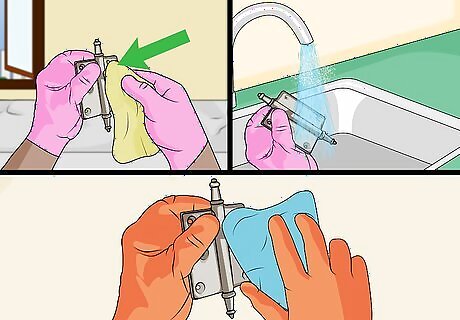 Clean the hardware. Use a damp rag or soft bristle brush and remove any paint remaining on the hardware. A rag is especially useful for wiping away remaining paint flakes and chemical residue. Rinse the hardware thoroughly in water, dry it with a towel, and enjoy your paint-free hardware.