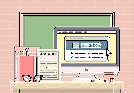 Read through the definitions section carefully. Most laws start with a section of definitions that tells you exactly how particular words are used for the purpose of that law. Some of these are merely abbreviations or shorthand for lengthier terms. Others, however, may change the definition of a word so that it has a more specific meaning than its common understanding. For example, a simple word like "person" may have a specific definition for the purposes of a statute dealing with the protection of the rights of disabled people. In that context, you would also want to look for the definition of operational terms, such as "disabled" or "disability." If you were arguing that a particular right was protected under that law, you would first have to prove that the standard for "disability" had been met.Tip: Sometimes statutes borrow definitions from other statutes. To understand these terms, check the statute listed. For example, a statute on disability rights may incorporate the definition of "disability" found in the Americans with Disabilities Act (ADA).