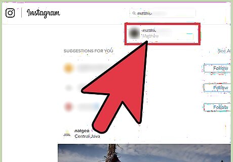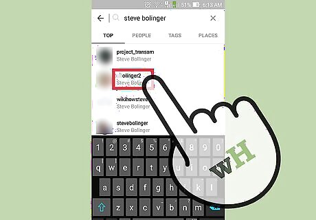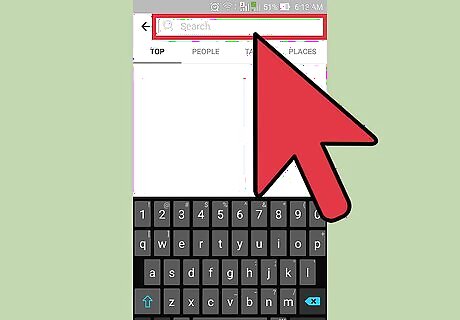 Type in the name of an account you'd like to follow. Start with something simple, like Instagram's official page--for that, you'd just type in "Instagram". Accounts with identical or similar names to your typing will appear as you type.