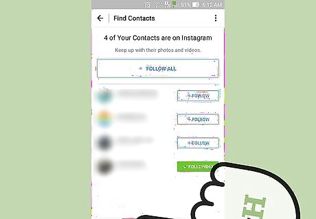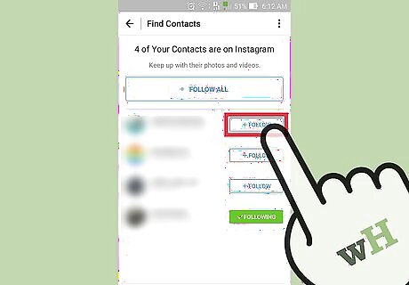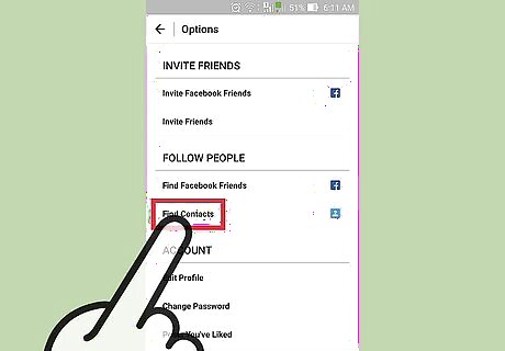 Tap the "Find People to Follow" option. This will allow you to select from your Facebook friends' Instagram accounts, your contact list, or a list of suggested accounts courtesy of Instagram. On Android, this option is labeled "Find Friends".
