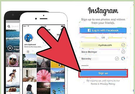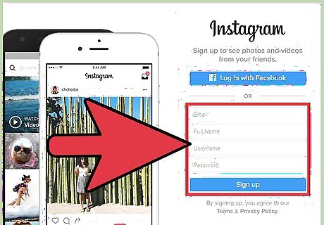 Enter your preferred email address, full name, username, and password into the appropriate fields. Make sure your information is accurate and memorable before proceeding. You can also click "Log in with Facebook" to use your Facebook credentials. If you aren't logged in on Facebook when you do this, Instagram will prompt you to do so.