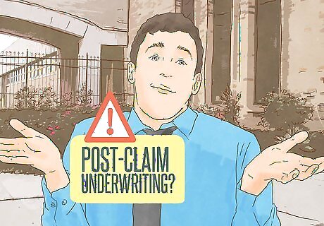 Sue your insurance company for post-claim underwriting. Before an insurance company issues you a policy, it engages in a process called "underwriting," by which it investigates you and your history to determine if it should offer you an insurance policy. Sometimes, insurance companies will refuse to pay your claim on the basis that your policy should never have been issued in the first place because you were too great a risk to insure, basically trying to underwrite you again after you suffer a loss (making you a greater risk to the insurance company) in order to avoid having to pay you. It will then try to cancel your policy, and use this as a basis for not paying an otherwise covered claim. If your insurance company does this, you can sue them because this type of behavior is not legitimate. To recognize this type of behavior, check to see which part of the insurance company is processing your claim—the claims department or the underwriting department. If it is the latter, be on the lookout for your insurance company taking this type of action against you. If your insurance company issues you a check refunding your premium payments because they are canceling your insurance, do not cash this check. Doing so may be seen as accepting the insurance company's decision to cancel your insurance in light of a claim it does not want to pay.