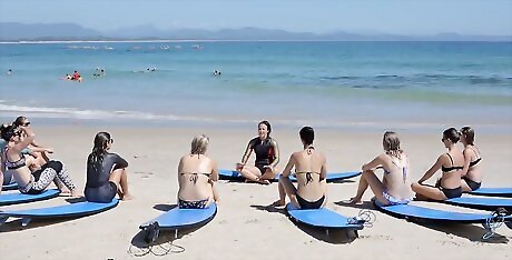 Talk to more experienced surfers or instructors if you can. The best way to practice and prepare for hitting the beach is with another person nearby who knows more about surfing than you do, and can provide feedback and advice. If you have a friend who surfs, ask for help. Friends don't usually charge and you can practice privacy of your own home rather than on the beach in front of others. Pay an instructor. This is the most reliable way to learn the basics of surfing in a clear, methodical way. For a fee, he or she will teach you all you need to know and give you pointers that will help you get out into the surf and having fun quickly.