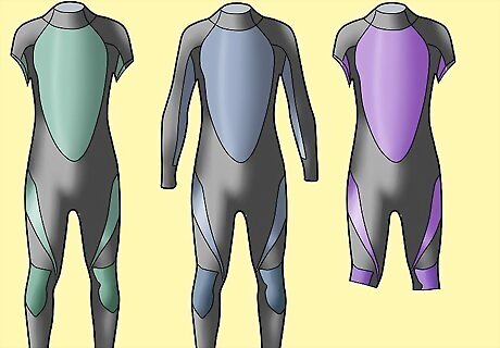 Get a wetsuit. In many places, a wetsuit is just as essential as the board itself to ensure an enjoyable surfing experience. The wetsuit keeps your body warm in cold water, helping prevent chills and hypothermia. If the local surf shop recommends a wetsuit, get fitted and rent or purchase one before you hit the beach. It does depend on where you are though as if the water is not cold enough you will overheat and wetsuits can restrict your movement and should only be used in really cold water.