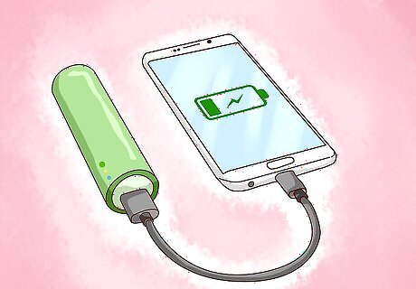Bring something to charge your phone. Keeping your phone charged is absolutely essential. If your phone dies, you won't be able to stay in contact with your group if you're separated or take pictures of the convention. Bring along a portable phone charger, an extra battery, or both. If you bring a phone charger and plan on searching for an outlet at the convention, it may be a good idea to bring a power strip. That way, if someone is using an outlet you need, you can both use it.