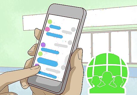 Keep track of your group using a group chat or location sharing app. Start a group chat with everyone in your party on the messaging app of your choice. This will help everyone keep in touch if you get unintentionally separated. You should also consider using a location sharing app like Find My Friends, because your group members might not be able to message the group chat depending on what they're doing at the time. You should also decide on a location you can meet at if you get separated and your phones are dead.