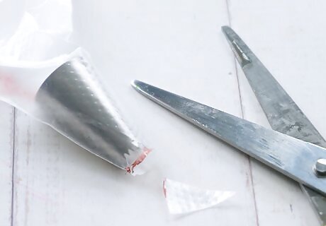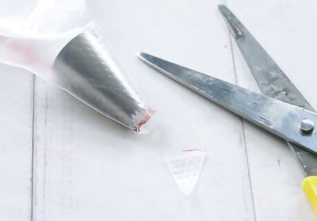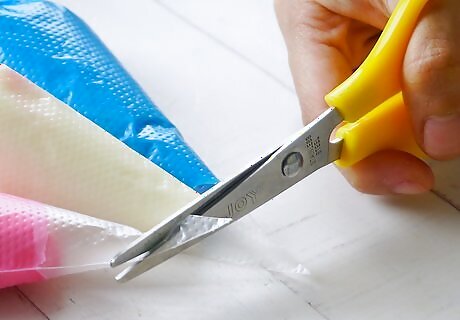 Cut the ends off the piping bags. Now that each bag is full of frosting, it’s time to cut off the tips. You don’t need a large hole, just a small area for the frosting the go through. Try just snipping off the very tips of the bag. You can always cut off more if you run into trouble with it later on.