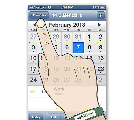 Open the Calendar app. Unless you've moved it, you will find it on your home screen. At the top left of the calendar window, tap Calendars.